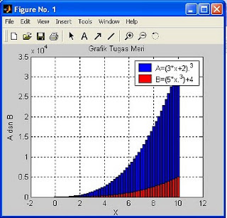 legend('A=(3*x+2).^3','B=(5*x.^3)+4')